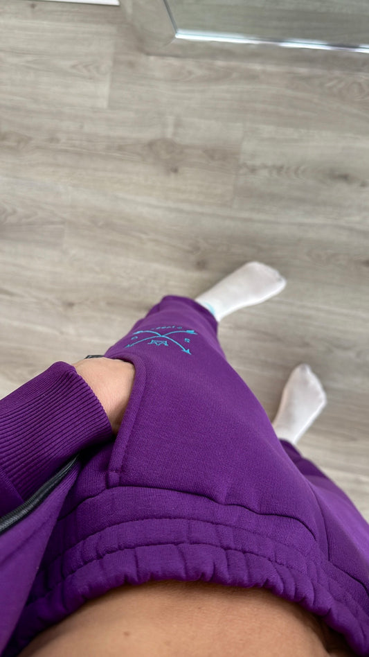 „Purpurinis" kelnės su guma su turkio siuvinėjimu