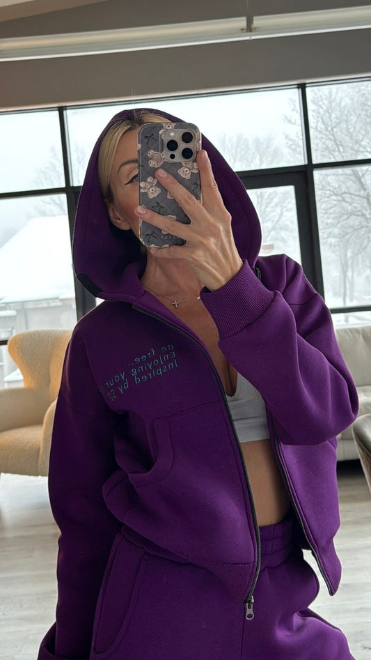 ŠIUO METU NETURIMEPurpurinis džemperio ir šortų komplektas moterims | PRE - ORDER