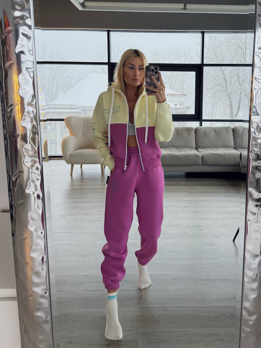 „Pastel Yellow & Lilac " džemperis su PILNU užtrauktuku