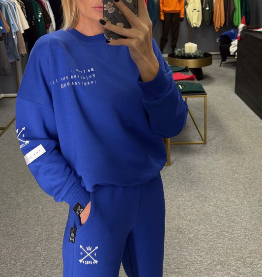 ŠIUO METU NETURIMEMėlynas kostiumėlis su žaliu siuvinėjimu