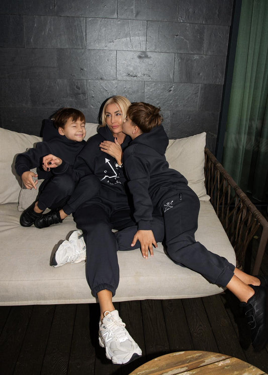 Juodo trisiūlio vaikiškas kostiumėlis BE KAPIŠONO | PRE - ORDER