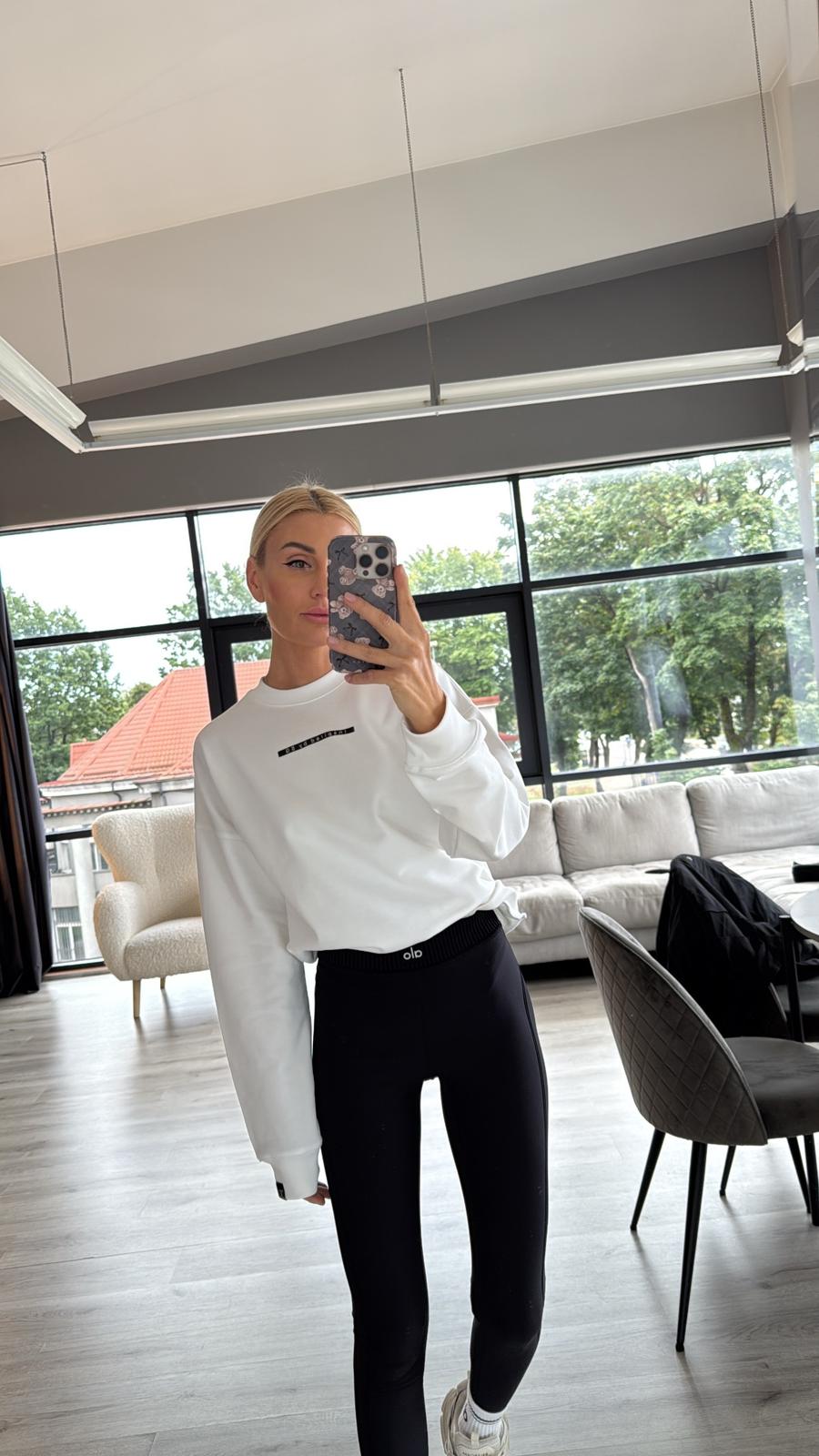 Baltas trisiūlio džemperis