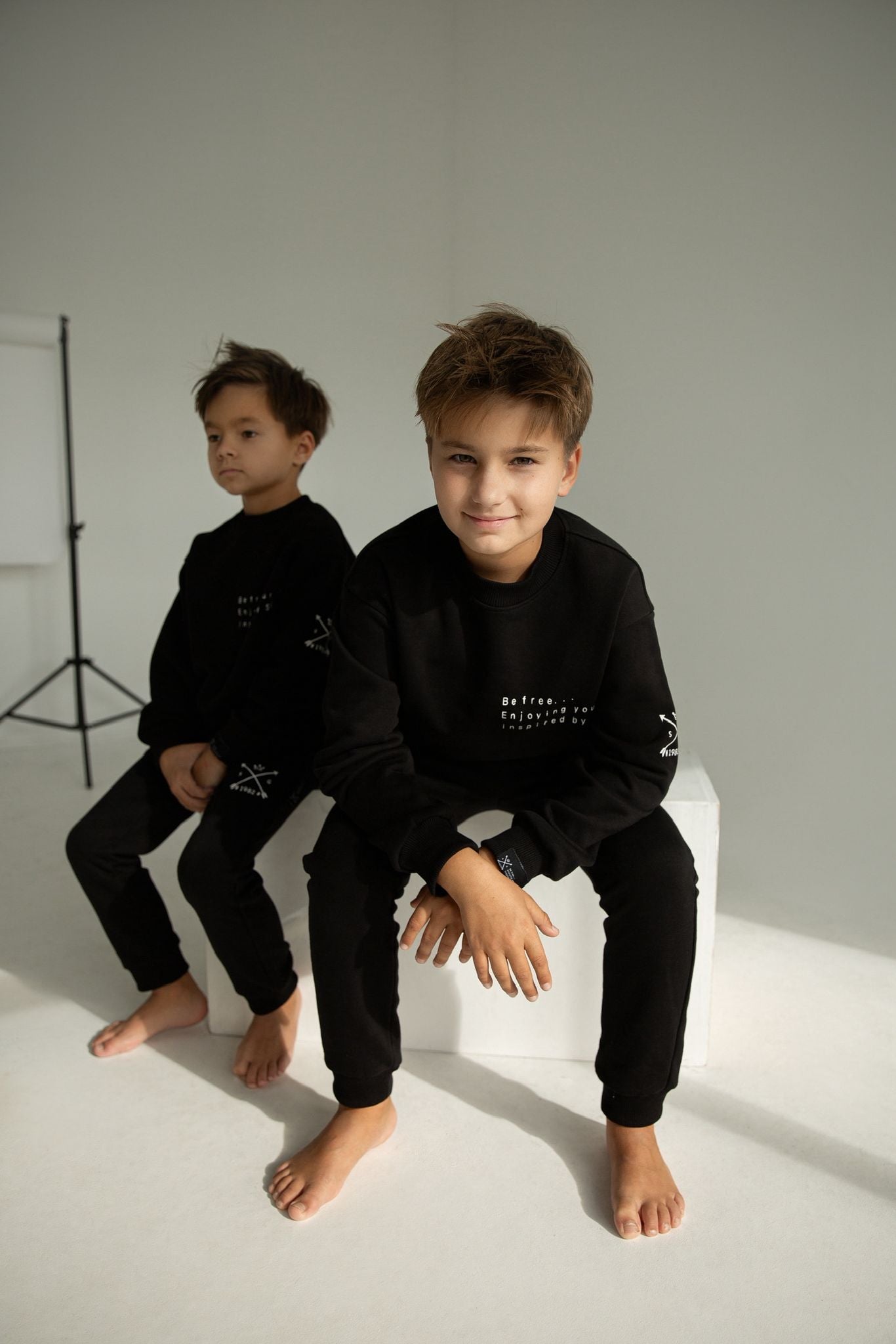 Juodo trisiūlio vaikiškas kostiumėlis BE KAPIŠONO | PRE - ORDER