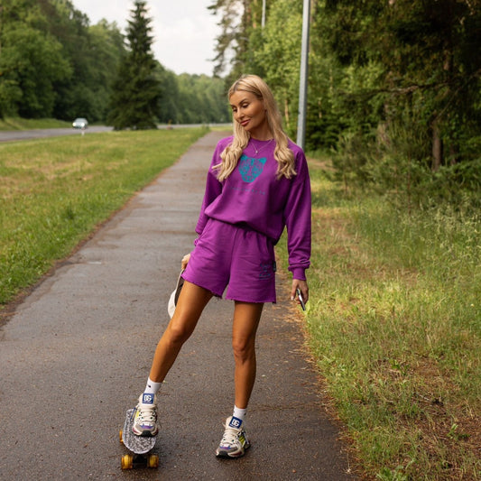 Purpurinis džemperio ir šortų komplektas moterims | PRE - ORDER