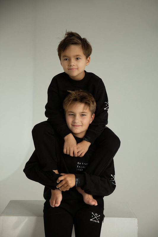Juodo trisiūlio vaikiškas kostiumėlis BE KAPIŠONO | PRE - ORDER