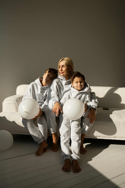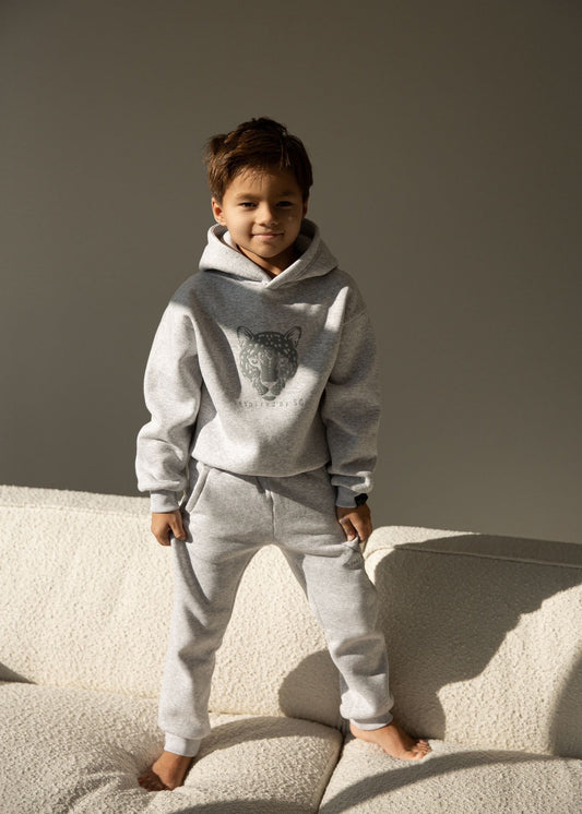 Šviesiai pilko melanžo spalvos kostiumėlis VAIKAMS be KAPIŠONO | Su pūkiu | PRE - ORDER
