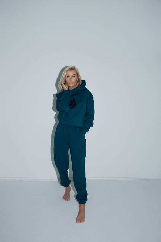 Mėlynas kostiumėlis su žaliu siuvinėjimu